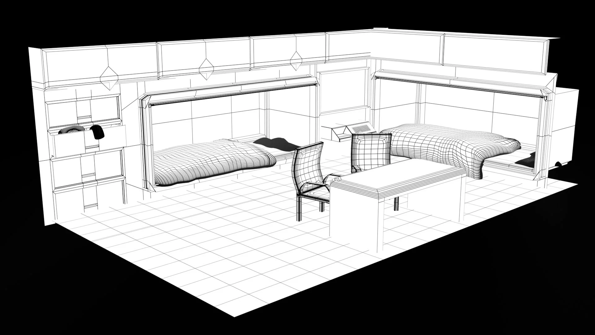 The majority of the episode takes place in the interior station, moving around from place to place. I created a large set piece and we focus in on different areas of the station from scene to scene.