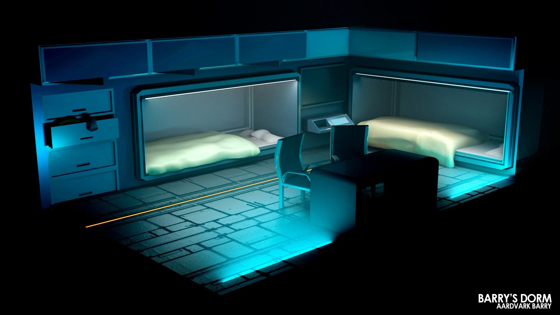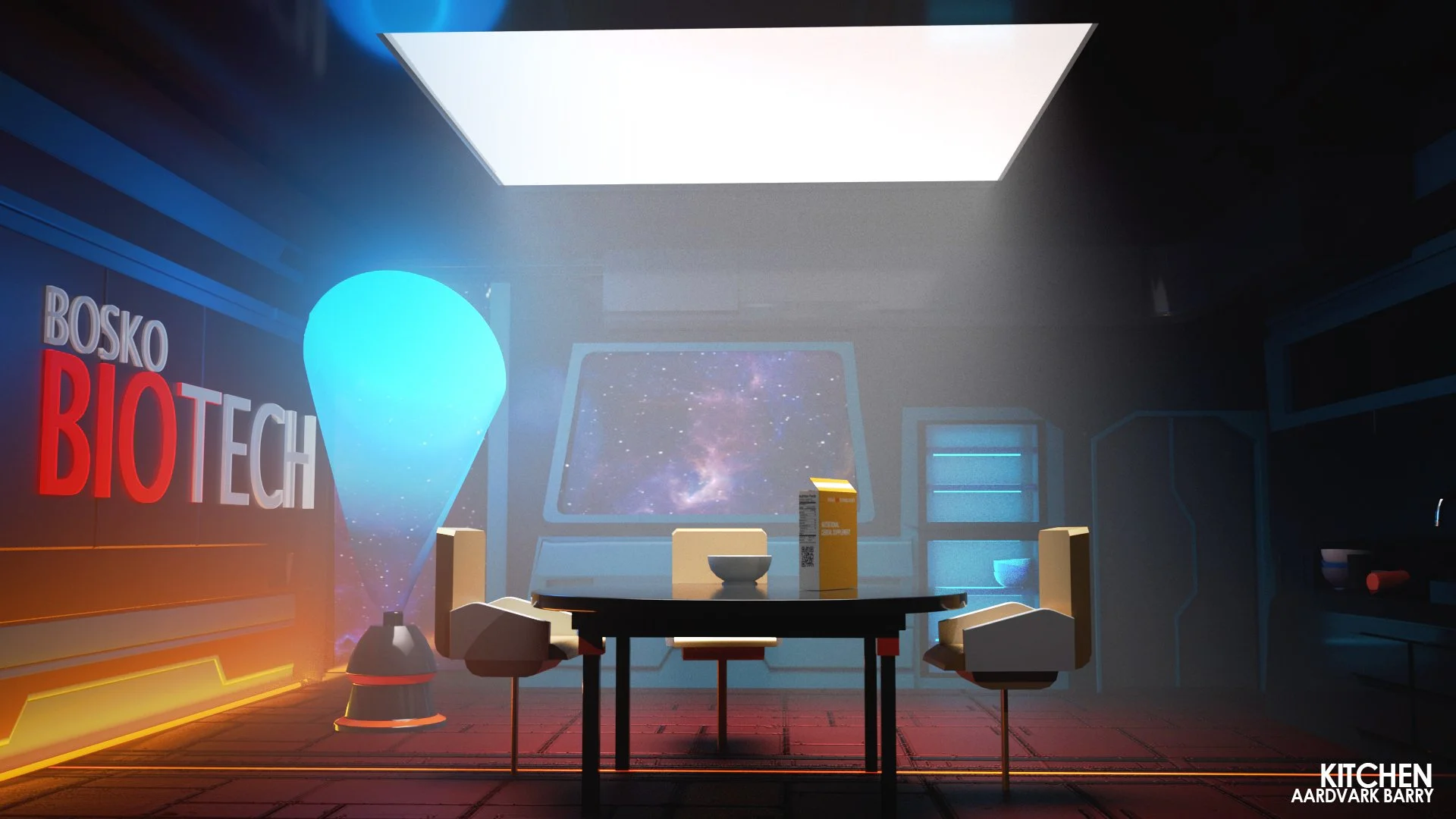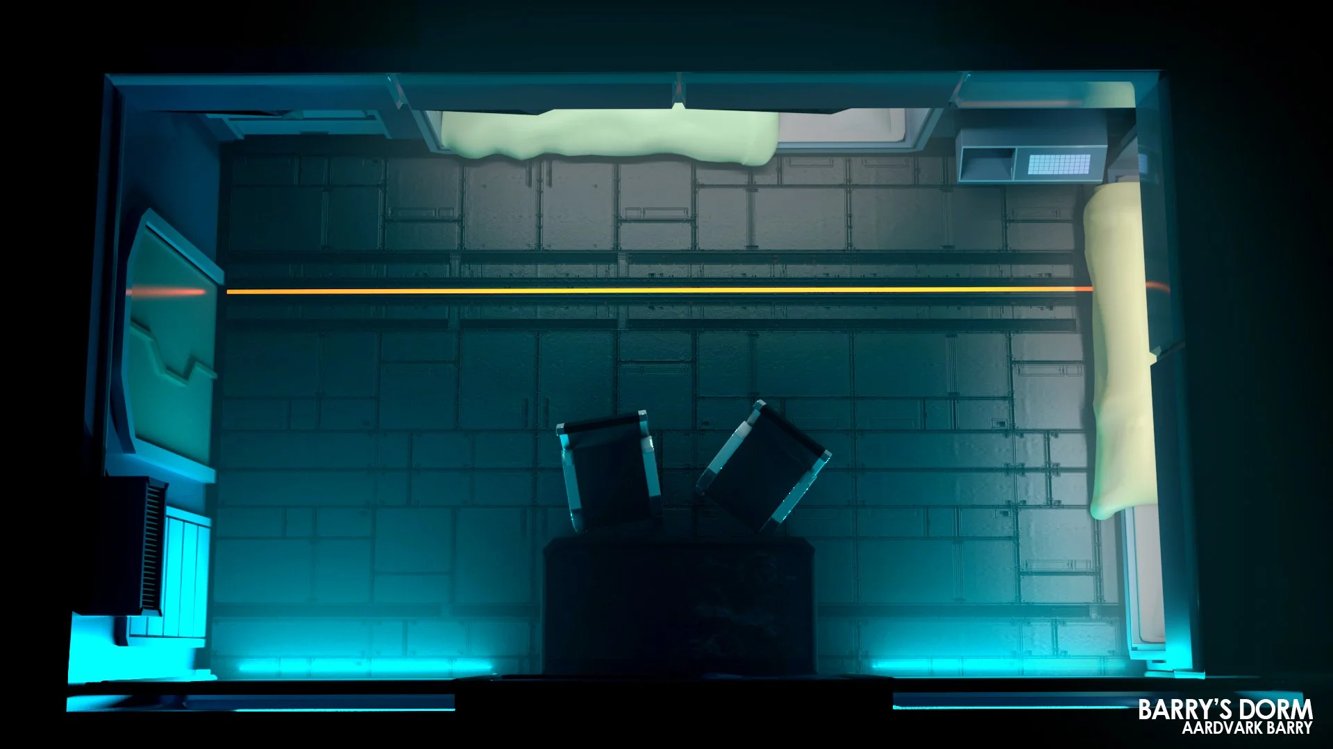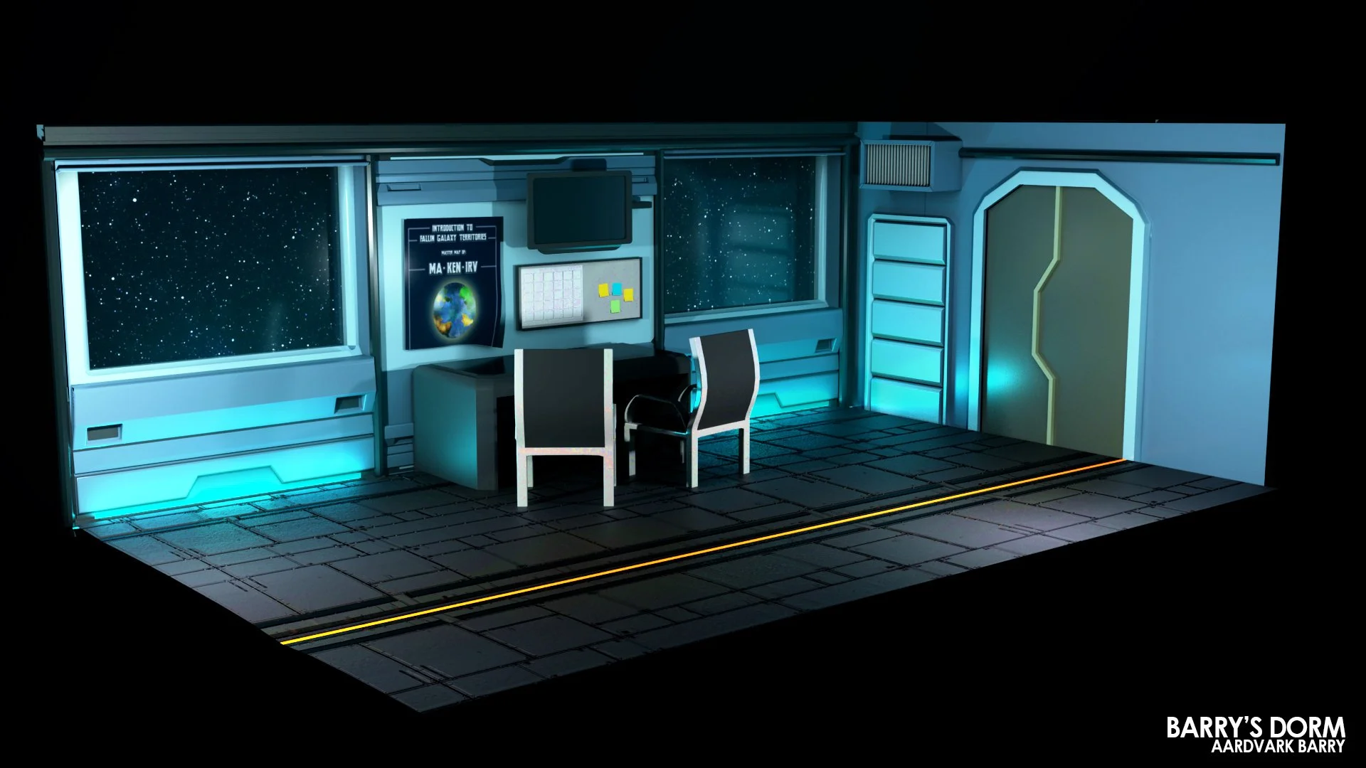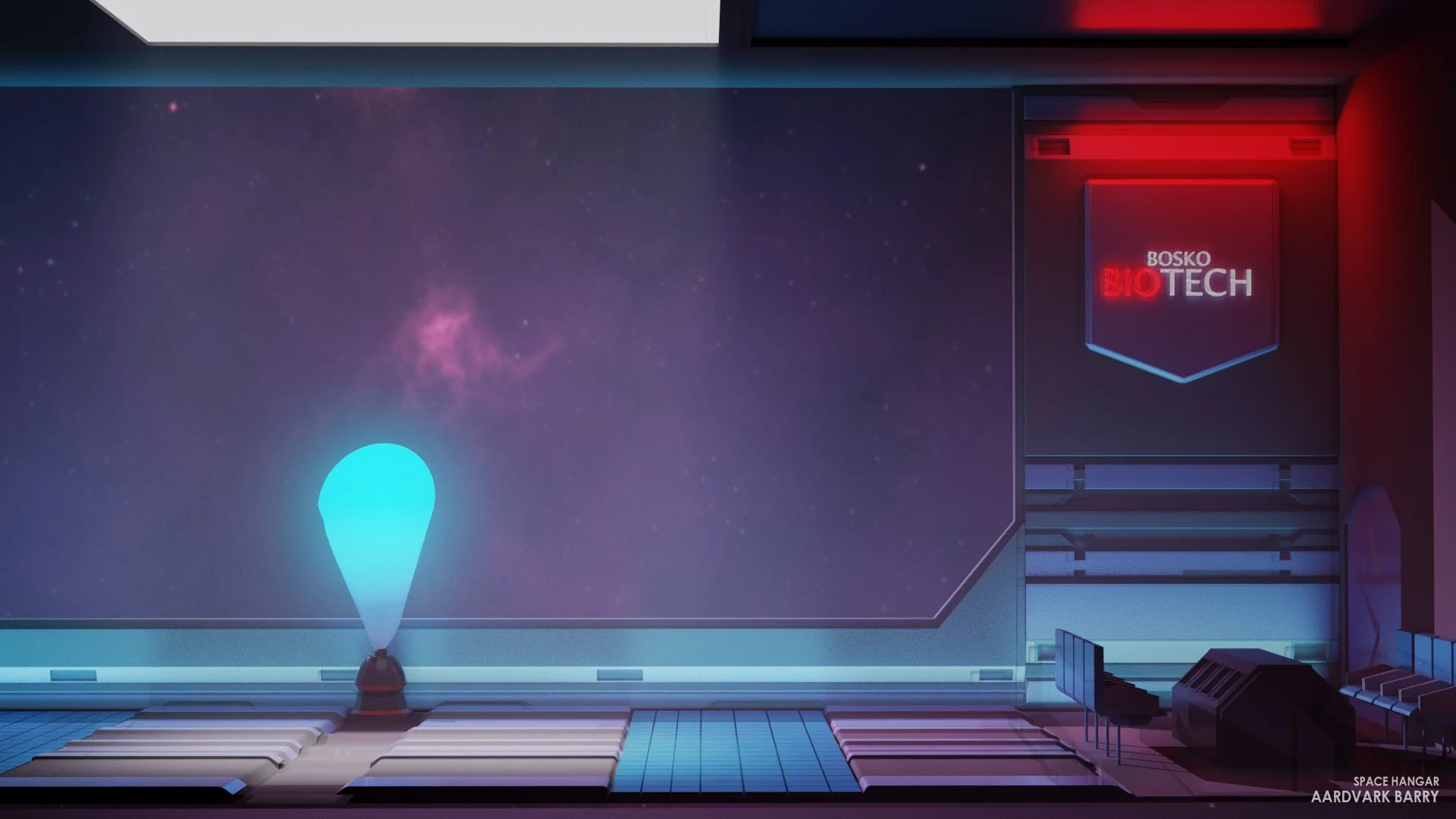 The first episode of Aardvark Barry we produced takes place in a space station, where Barry and his crew run into some issues. I decided to created a design for both the exterior and interior sections, and wanted to create a neon and futuristic look that was colorful and full of life.