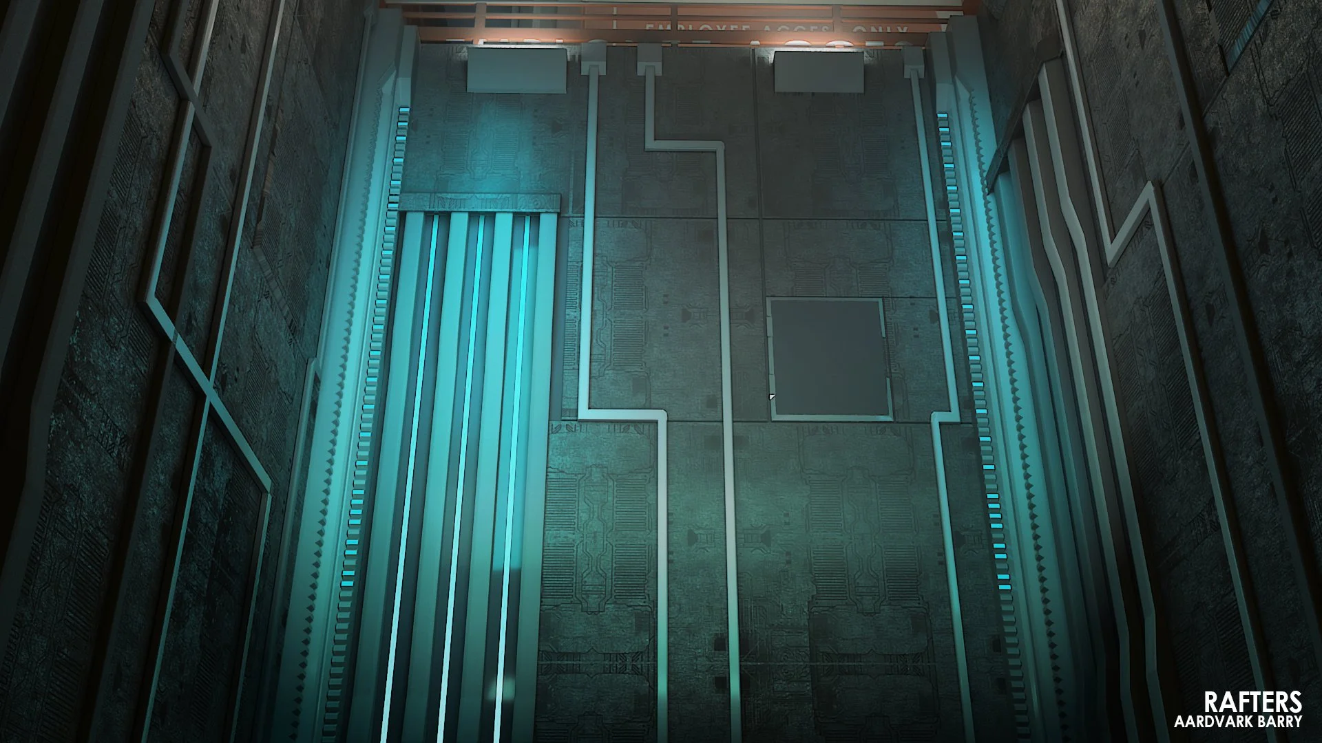 This clip is the environment used in one of the establishing shots of the interior station, in a scene where we watch passengers exit a shuttle and flock into the station.