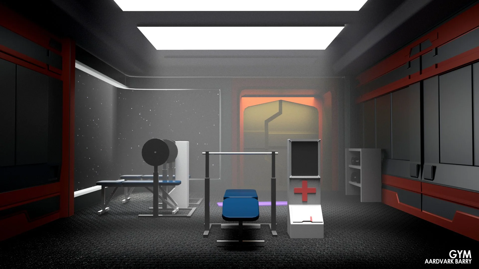 Barry’s persona gym, with equipment set up to suit his Aardvark accessibilities.